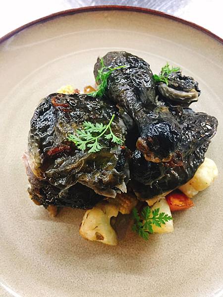 吃烏骨雞還有一杯烏骨雞湯補個元氣,神奇的烏骨雞本身吃起來就帶點甜味,這次用雞肉飯的小時候記憶,作了油蔥酥醬,淋在剛出爐的烏骨雞上,配著這熟悉的味道,讓人ㄧ口接一口的完食了😱